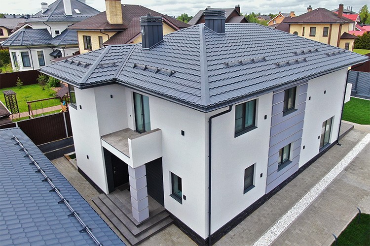 Металлочерепица Grand Line Квинта плюс Satin Matt 0,5 RAL 7024 Мокрый асфальт